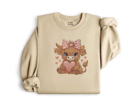 Highland Cow Heart Embroidery Crewneck