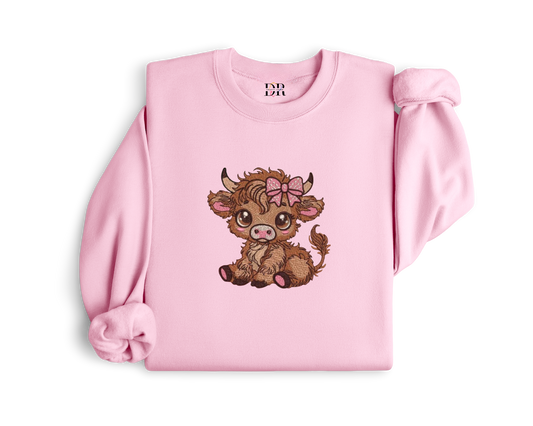 Cute Highland Cow Embroidery Crewneck